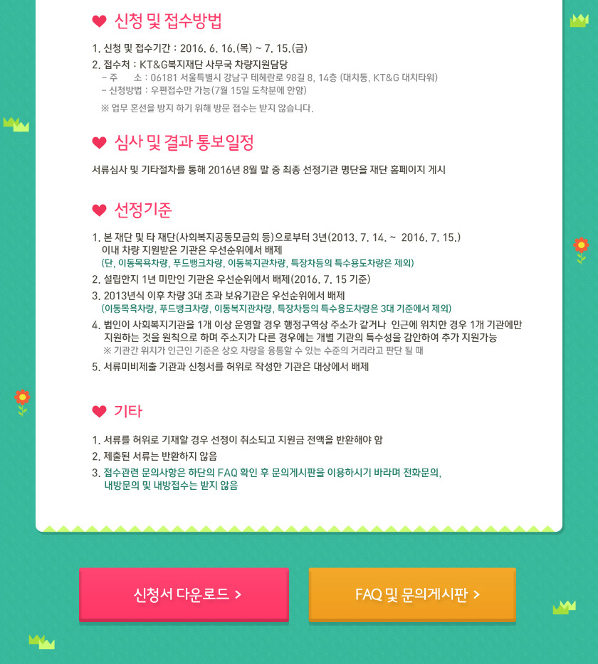 2. 접수처 : KT&G복지재단 사무국 차량지원담당